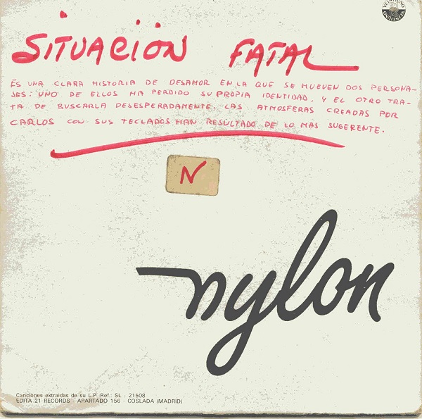 . Inicio - Consulta - Grupos Grupo:nylonMunicipio: MADRID - Provincia: MadridEstilo Principal: Pop - Estilo 2: No constaObservaciones: Titulo Caratula Formato Año Comentario nylon lp 1985 situacion fatal single 1985 luna de Madrid single 1985