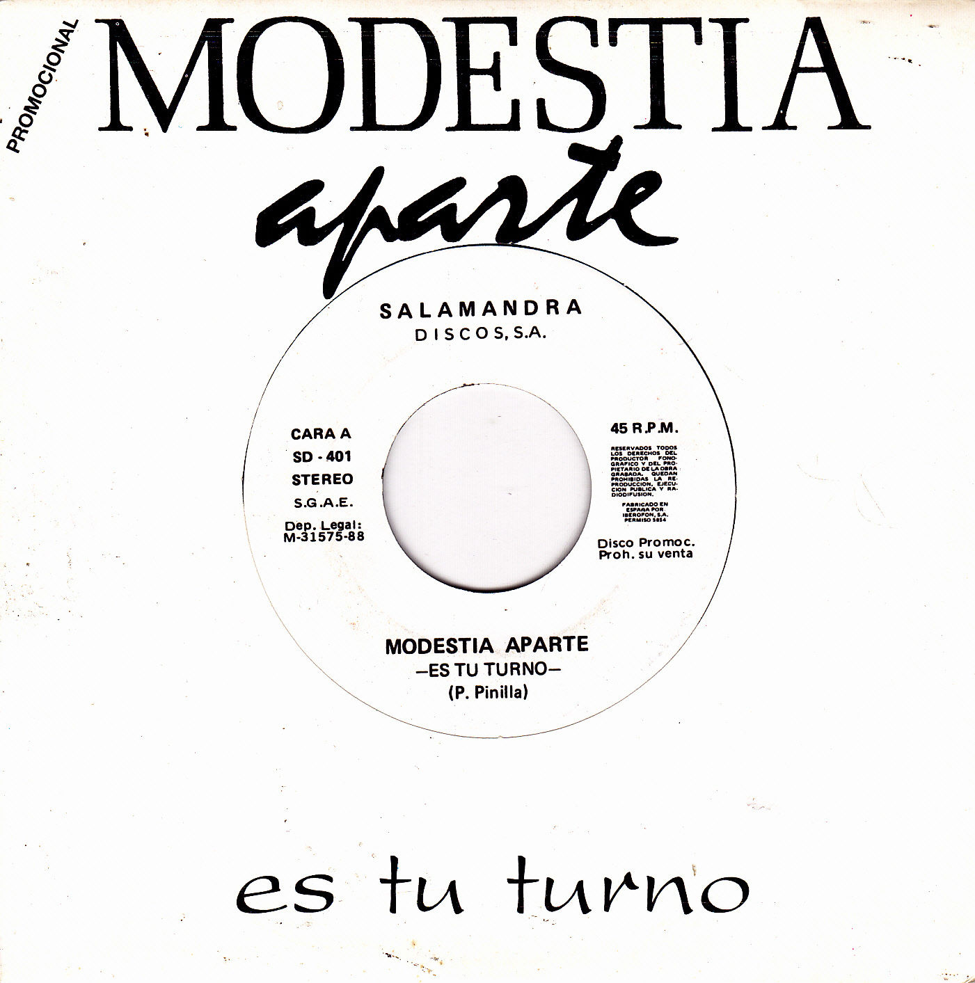 . Inicio - Consulta - Grupos Grupo:Modestia AparteMunicipio: MADRID - Provincia: MadridEstilo Principal: Pop-rock - Estilo 2: No constaObservaciones: Titulo Caratula Formato Año Comentario Cosas de la edad cd 1990 Historias sin importancia cd 1991 Modestamente...hasta siempre cd 1994 Doble Cd Vivo cd 2002 En directo Esto debe ser amor cd 2004 Modestia Aparte y amigos cd 2005 Veinte cd 2008 En directo cd 2014 Gracias! 25 años cd 2014 Mix Modestia cdep 1994 Cosas de la vida cdsg 1993 Dias de escuela cdsg 1993 Es por tu amor cdsg 2002 Cosas de la edad cdsg 2002 Playas de Mazarron cdsg 2002 Pasion cdsg 2003 Donde voy sin ti cdsg 2004 Esto debe ser amor cdsg 2004 Mi generacion cdsg 2004 Hora punta en el metro cdsg 2004 Por amor al arte lp 1988 Cosas de la edad lp 1990 Historias sin importancia lp 1991 La linea de la vida lp 1992 Modestia Aparte lp 1993 Vamos alla maqueta 1988 Mix Modestia/Mega Modestia maxi 1994 Es tu turno single 1988 Ojos de hielo single 1988 Chirimoya single 1989 Copas rotas single 1989 Como un sultan single 1989 Melancolico total single 1990 Pasion single 1990 Es por tu amor single 1990 Cosas de la edad single 1990 Como te mueves single 1991 Trapos sucios, platos rotos single 1991 Piel y arena single 1991 Ella todo lo hace bien single 1992 No sonrias single 1992 Maria single 1992
