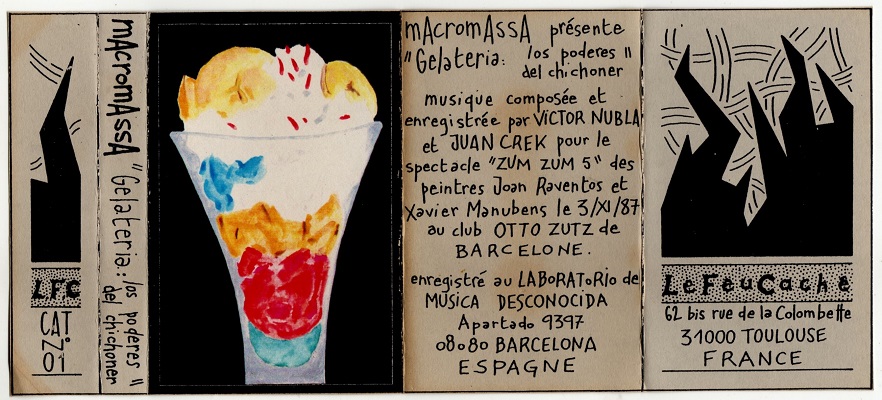 . Inicio - Consulta - Grupos Grupo:macromassaMunicipio: BARCELONA - Provincia: BarcelonaEstilo Principal: Electronica - Estilo 2: ExperimentalObservaciones: Titulo Caratula Formato Año Comentario agosto cassette 1976 es Darlia Microtónica ampliada. Fue un concierto que se perdió y solo se encontró una parte que se editó como Darlia Microtónica. Después se encontró entero , y es este. el regreso a las botellas de papa nodulus cassette 1984 gelateria: los poderes del chichoner cassette 1987 tape 18 cassette 1987 Compilación internacional. Unico grupo español Gran consecuente autoproliferacion cassette 1990 Con el grupo Clonicos A joyful noise cassette 1990 Recopilacion internacional. Unico grupo español Labyrinth vol. I cassette 1990 Recopilacion internacional. Unico grupo español Home-made music for home-made people vol. 8. Sexy but chic. Ode to Samantha Fox cassette 1990 Recopilacion internacional. Unico grupo español Secreto metro cassette 1993 Recopilacion internacional. Unico grupo español La musica consecuente cassette 1994 Muelles sensoriales I cassette 1995 Los hechos Perez cd 1993 Zog live cd 1994 The last eccentrics for sculptured sounds cd 1994 Recopilacion internacional. Unico grupo español Um-yu (las flores amarillas tambien dan entradas nuevas a los perros) cd 1995 Puerta heliogabal cd 1997 Armas mosca cd 2010 La ligereza de las montañas cd 2012 Directo sala Transformadors directo 1990 darla microtonica ep 1978 el concierto para ir en gGlobo lp 1980 macromissa lp 1987 espejo rapidisimo qinqen lp 1988 Los hechos Perez lp 1992 demos 79 maqueta 1979 Alter musiques natives RECOPILATORIO 1995 Doble cd Barcelona ficcion romance RECOPILATORIO 1988 kalashnikov RECOPILATORIO 1984 La ciudad secreta. The experimental sounds of Barcelona 1971-1991 RECOPILATORIO 2013 Recopilacion, solo pongo grupos de los 80 la zona RECOPILATORIO 1988 muestra RECOPILATORIO 1987 The Van Gogh's favourites RECOPILATORIO 1990 Recopilacion. Solo pongo grupos de los 80 veterinarios del k'os - miedo RECOPILATORIO 1988